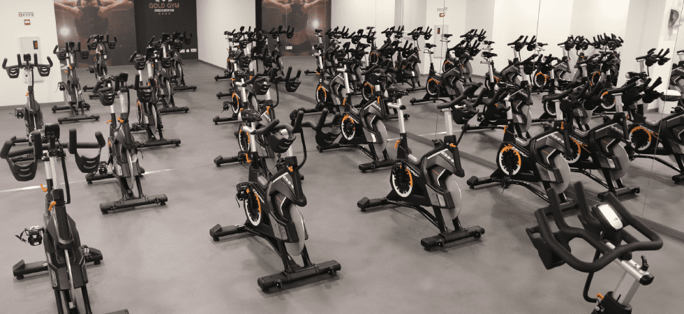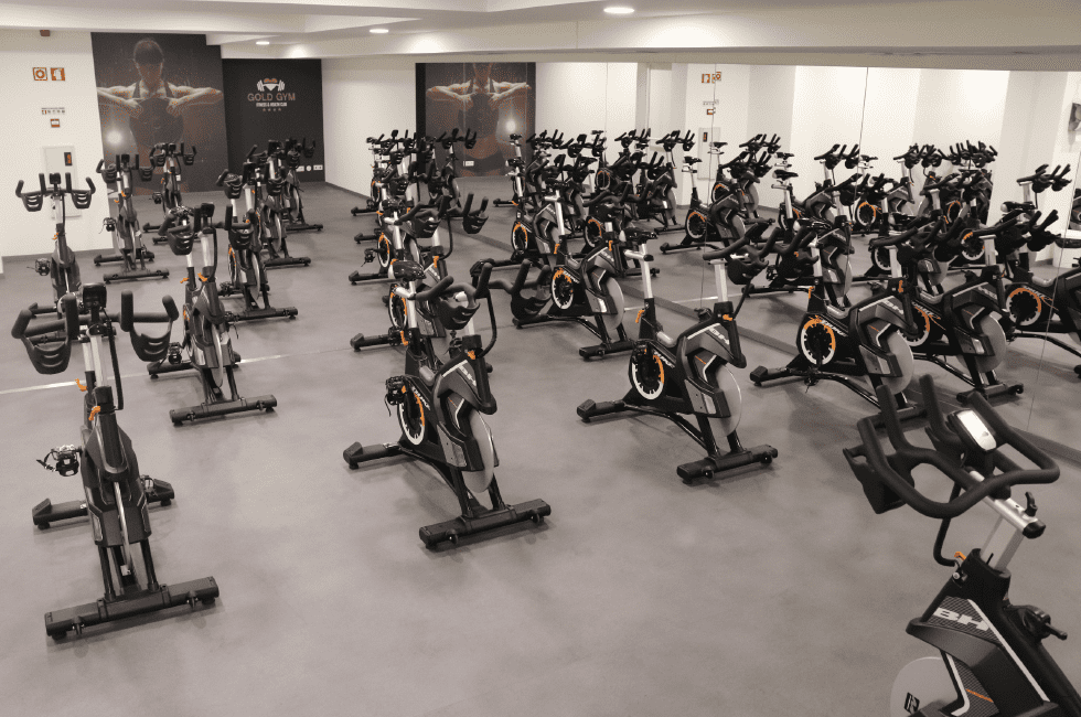 Uma vasta sala de atividades em grupo, uma sala de musculação com diversos aparelhos profissionais e um espaço dedicado ao Cardiofitness com vista para o mar.