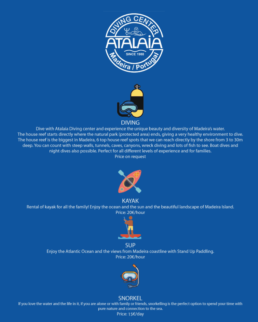 Dive with Atalaia Diving center and experience the unique beauty and diversity of Madeira’s water.